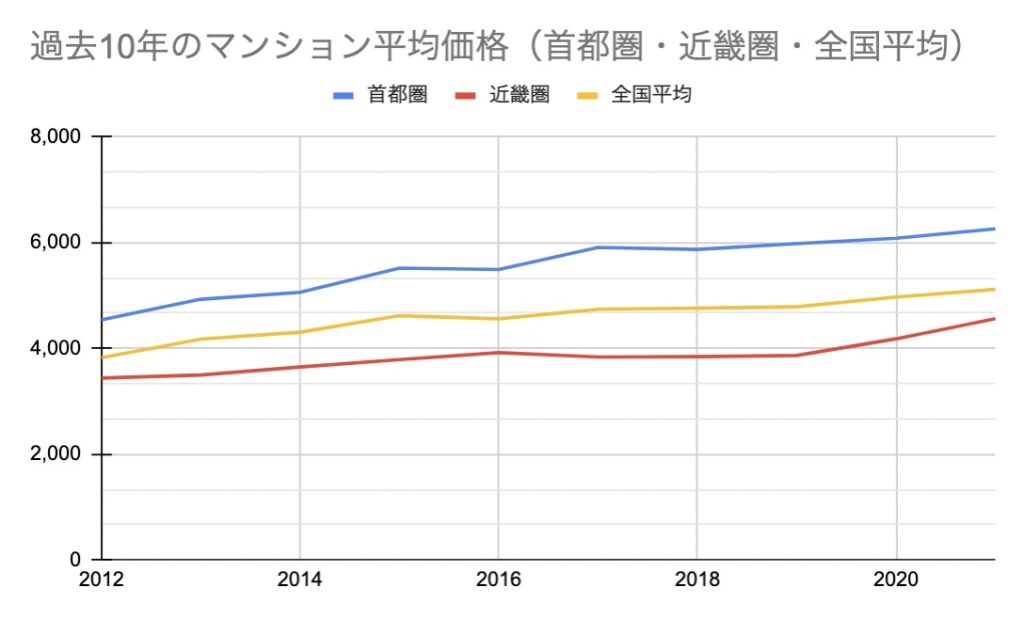 過去10年のマンション平均価格の推移