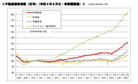 引用:PressRelease<不動産価格指数(住宅)(令和4年8月分・季節調整値)>|国土交通省