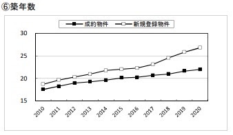 なお、マンション売却の新規登録も成約も下記グラフのとおり平均築年数は21.99年(前年21.64年)であり、流通するマンションの平均築年数は年々古くなっています。
