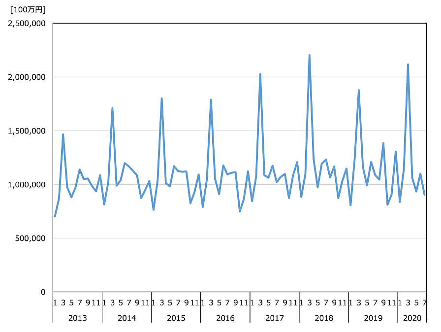 出典:不動産取引業の売上高の推移(総務省統計局)