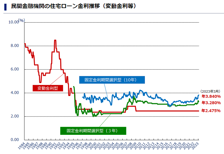 日本の住宅ローンは、1990年代後半から変動金利型で平均2.5%以下と非常に低い水準で推移してきました。この長期間の低金利が、住宅需要を長期にわたって下支えしたことは間違いありません。