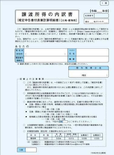 確定申告書の前にこの譲渡所得計算証明書を記載しておくことで確定申告書を作成しやすくなるでしょう。