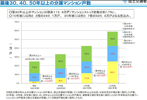 引用:「国土交通省 築後30、40、50年以上の分譲マンション戸数
