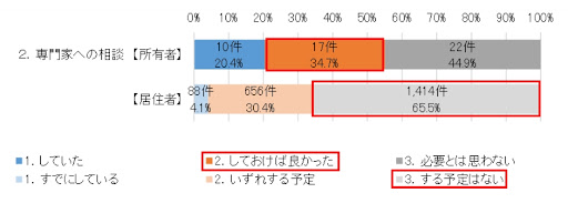 一例として「八王子市空き家総合実態調査の結果」をみると、相続した空き家問題について、専門家へ相談しておけばよかったとする回答が全体の34.71%を占めています。