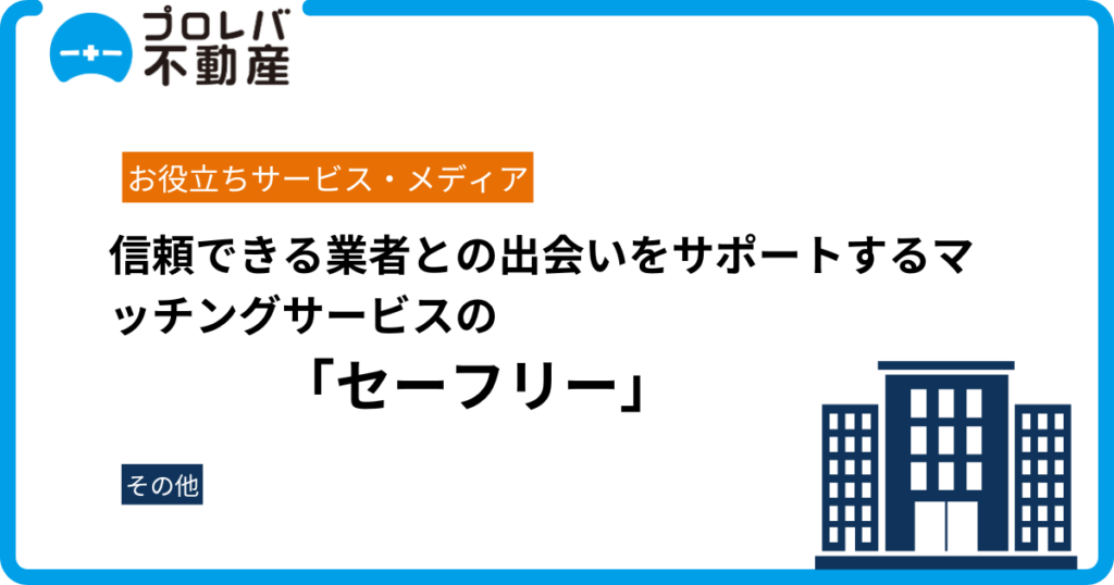 プロレバ不動産が「信頼できる業者」との出会いをサポートするマッチングサービスの「セーフリー」に掲載されました