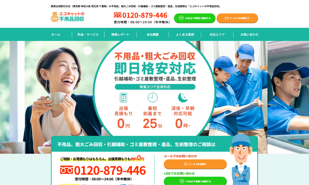 エコキャットは、不用品回収、粗大ゴミの処理、引越し時の不用品処理、ゴミ屋敷整理、遺品整理など、幅広いサービスを提供している業者です。迅速で丁寧な対応を心がけ、関東エリア全域でサービスを展開しています。清潔感を大切にしたスタッフが、依頼者に安心と信頼を提供しています。