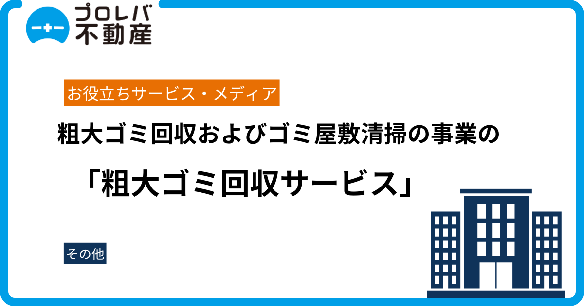 東京都、神奈川県、埼玉県、千葉県を中心に、粗大ゴミ回収およびゴミ屋敷清掃の事業を展開する「粗大ゴミ回収サービス」の公式サイトに、プロレバ不動産が掲載されました。